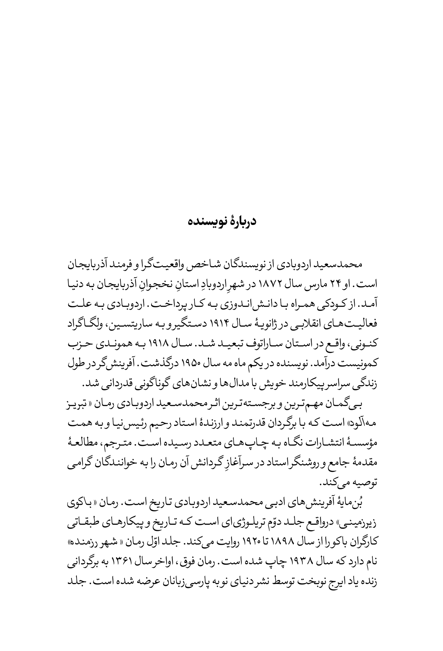 کتاب «باکوی زیرزمینی» نوشتۀ محمدسعید اردوبابی ترجمۀ سارا ودود مردی
