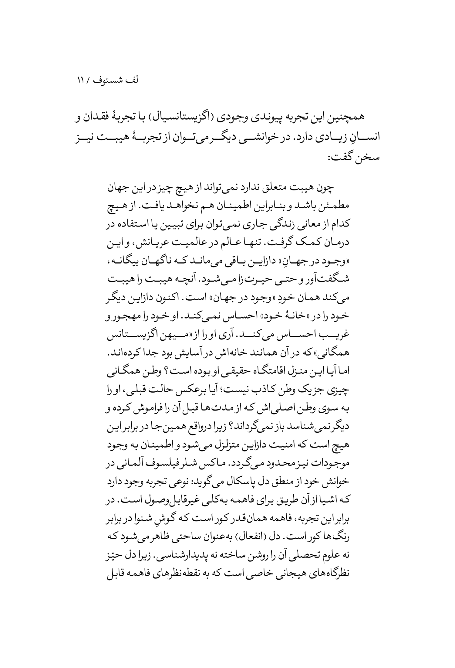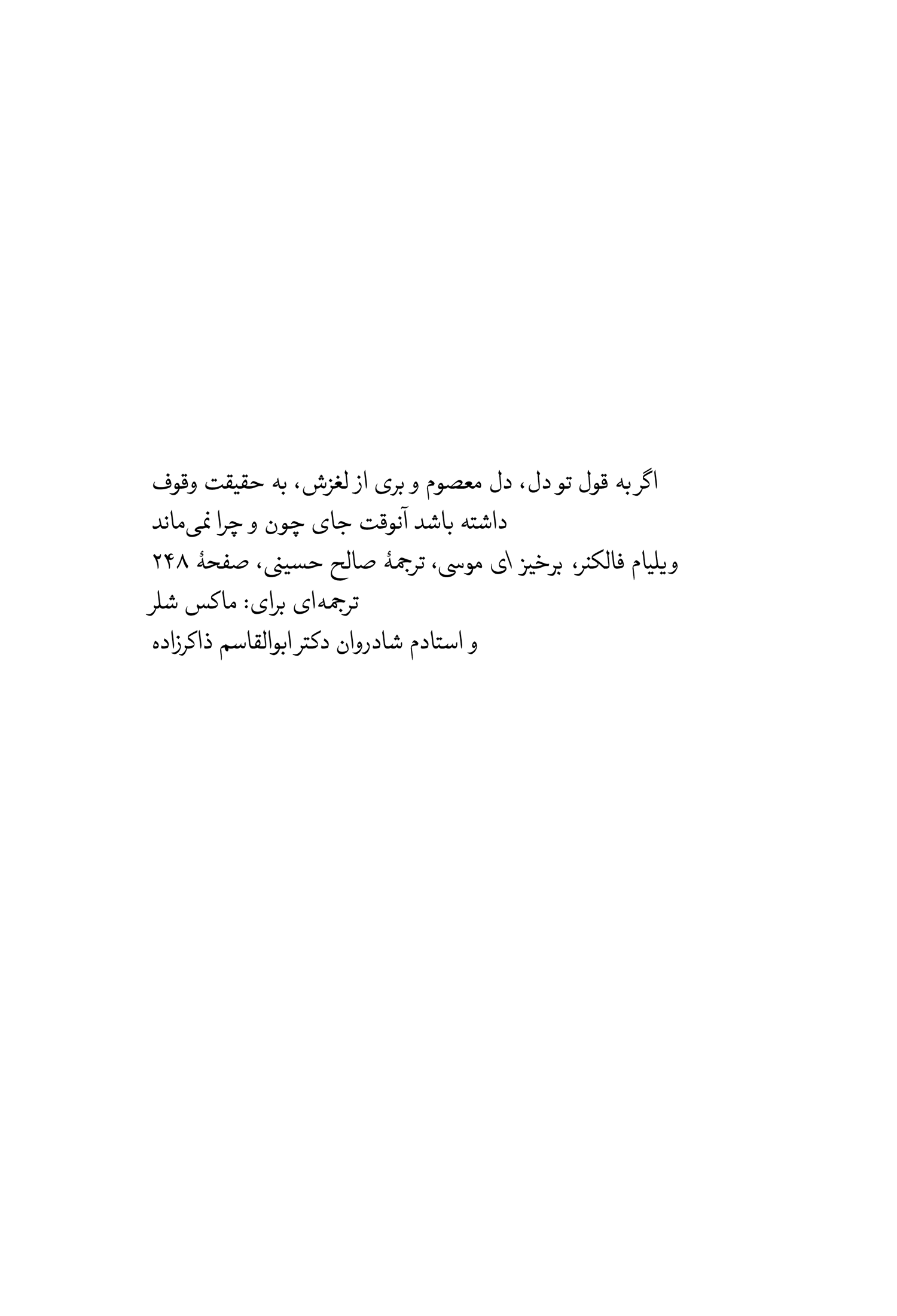 اگر می‌شد پاسکال را باز به زندگی فراخواند، به این حکم تاریخ چه پاسخی می‌داد؟ می‌گویند پرسشی است ابلهانه؛ تاریخ با زندگان طرف است نه با مردگان. می‌دانم؛ اما به‌گمانم برای نخستین‌بار، و چون به پاسکال مربوط است، رواست که تاریخ را مکلّف کنیم با مردگان رویارو شود. درست است که این کار بسیار سخت و گیج‌کننده است و تاریخ نیز برای توجیه خود باید فلسفۀ نوینی ابداع کند، زیرا فلسفۀ هگل ناکارآمدی خود را ثابت کرده است؛ همان فلسفه‌ای که همگان پذیرفته بودند، حتی آنانی که هگل استادشان نبود و بسیار پیش از او نیز تدریس می‌شد.