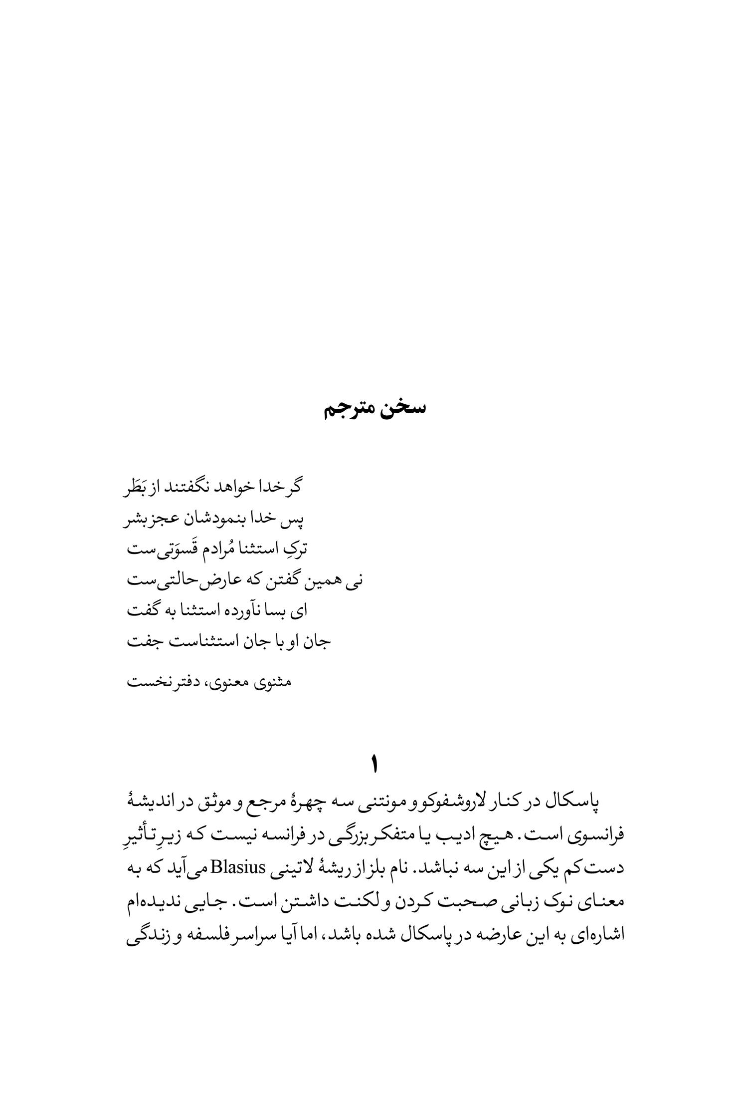 سه سده از زاده ‌شدن پاسکال می‌گذرد، و کمابیش همین ‌اندازه از مرگش: پاسکال عمر درازی نداشت، همه‌اش سی‌ونه سال.