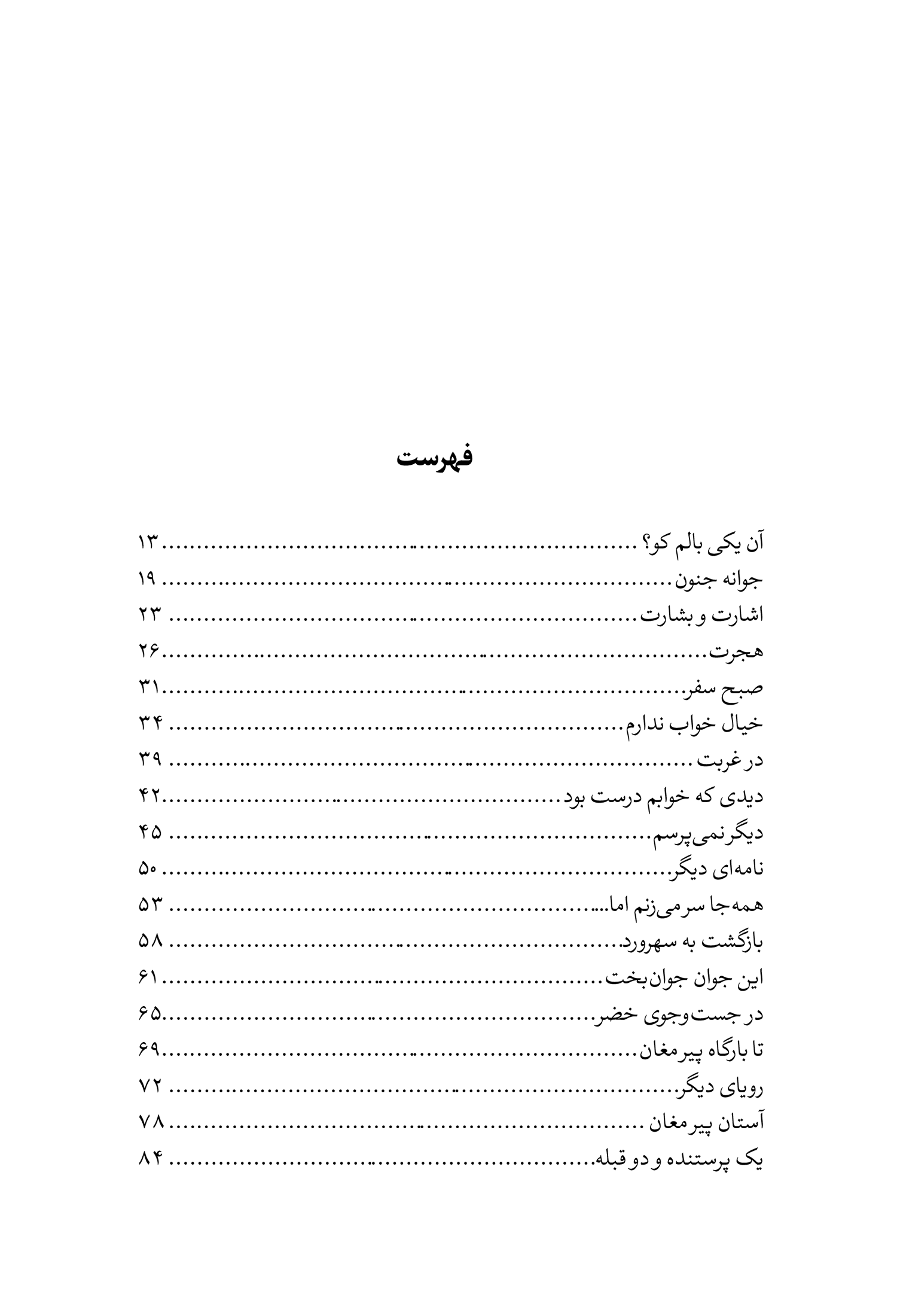 پایین‌تر از او، پیرمردی را دید که انگار می‌خواست به یحیی چیزی بگوید. ناگهان صدای او را شنید: «یحیی! آن بال که در دست آن پری‌روست، مال توست. بال دیگر تو همین است.»
